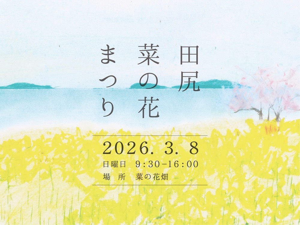すでに田尻の菜の花は咲き始め、見頃を迎えています。瀬戸内の島々を背景に抱く花畑の景色をお楽しみください。お越しになる方は以下のマップをご参考に田尻の散策をお楽しみください。